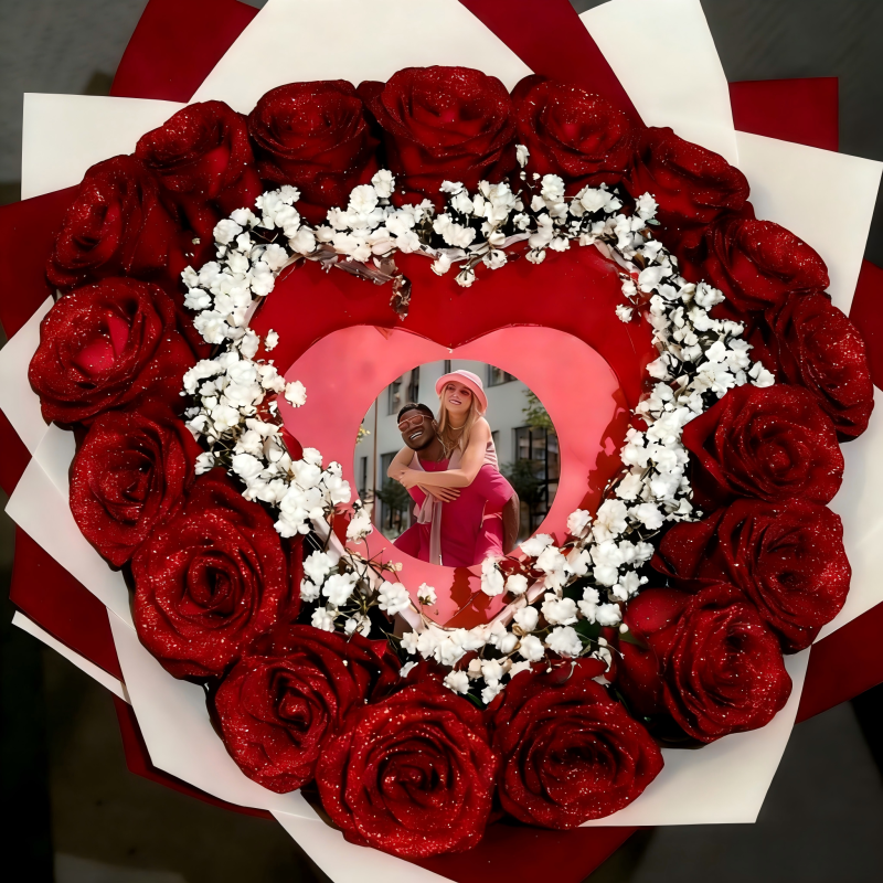 Es ist ein Moment voller Glanz und Überraschung, der Ihre schönste Erinnerung auf unvergessliche Weise enthüllt.Stellen Sie sich vor, Sie überreichen einen strahlenden Blumenstrauß, der vor Vorfreude funkelt.