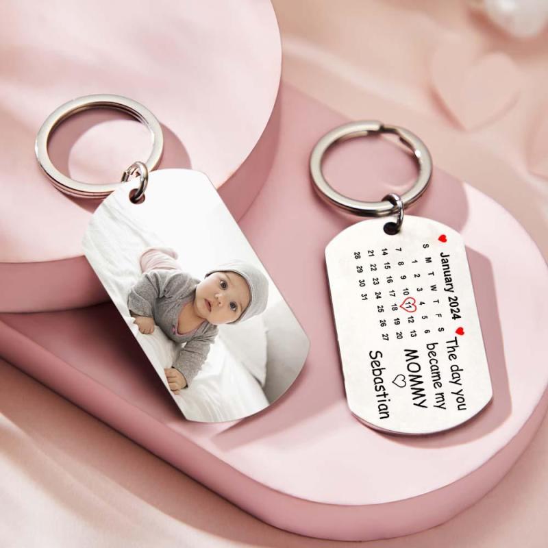 Personalisiertes Foto „der Tag, An Dem Du Meine Mama Wurdest“-kalender-schlüsselanhänger, Geschenk Für Mutter, Personalisierter Aluminium-schlüsselanhänger