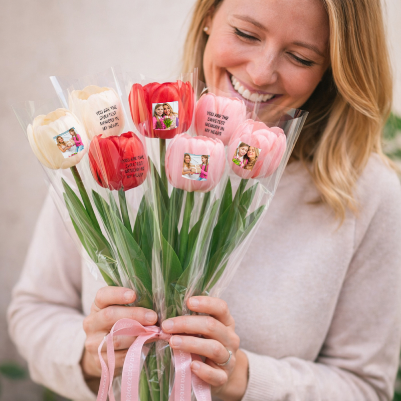 Fototulpe: Mit unseren Tulpen können Sie nicht nur ein Foto Ihrer Liebsten, sondern auch eine persönliche Nachricht hinzufügen. So wird das Geschenk zu einem ganz besonderen und unvergesslichen Erlebnis.