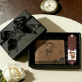Dieses Set besteht aus einer faltbaren Fotogeldbörse und einem gravierbaren Leder-Schlüsselanhänger.