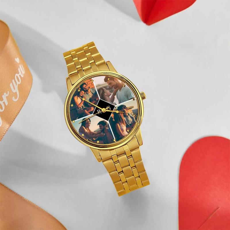 Individuell Gravierte Fotouhr Für Männer. Personalisierte Gravurbilduhr Für Den Valentinstag An Den Freund