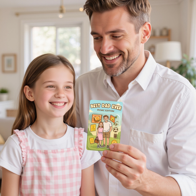 Feiern Sie den Vatertag mit dieser einzigartigen, individuell gestalteten Poke Card Vatertagskarte. Wir verwandeln Ihr Foto in eine von Anime inspirierte Sammelkarte. Größe: Metallkarte + Etui 7,3 x 11 cm (2,83 x 4,33 Zoll)