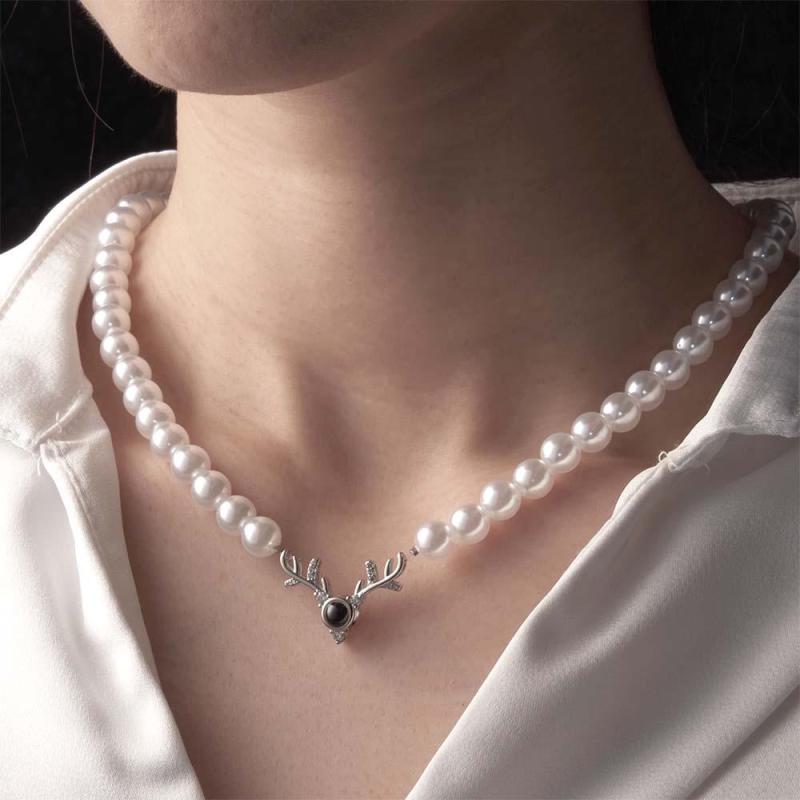 Individuelle Projektionskette Mit Geweih Und Perlenkette, Romantisches Geschenk
