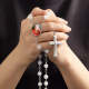 Personalisierte Rosenkranz-kreuz-halskette, Personalisierte Aquamarin-chalcedon-perlen-halskette Mit Foto