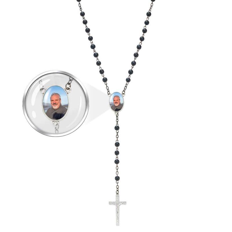 Benutzerdefinierte Rosenkranz-kreuz-halskette, Personalisierte Schwarze Mattierte Achat-halskette Mit Foto