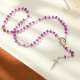 Personalisierte Rosenkranz-kreuz-halskette, Personalisierte Lila Flache Perlen-halskette Mit Foto