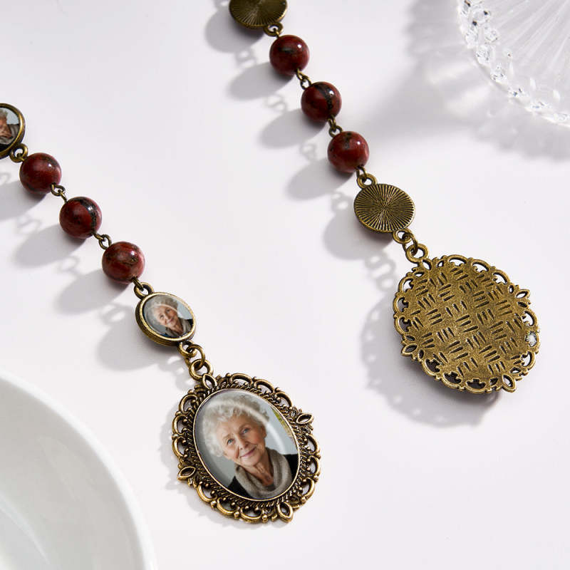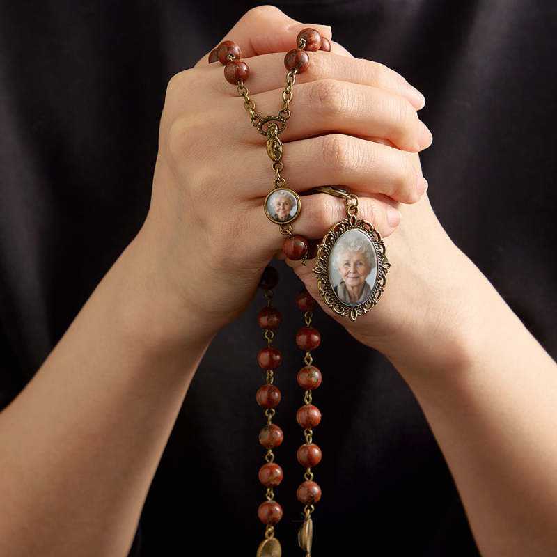 Personalisierte Rosenkranz-kreuz-halskette, Personalisierte Retro-sesamstein-halskette Mit Foto