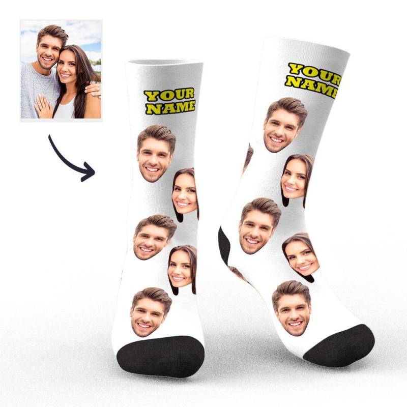 Benutzerdefinierte Socken Gesichtssocken Fotosocken mit Ihrem Text 3D-Vorschau Bunte Socken
