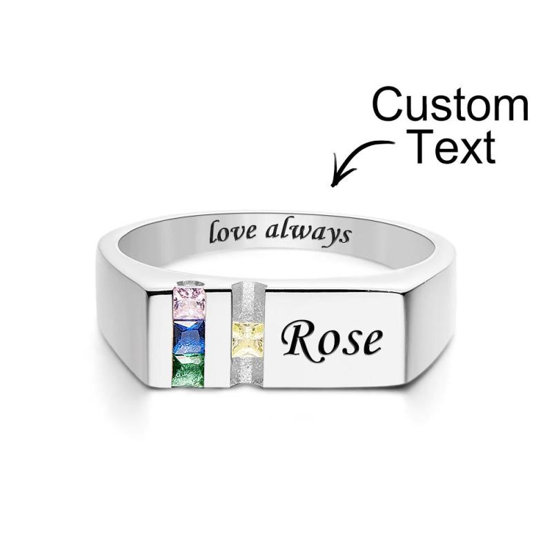 Geburtssteinring Mit Individuellem Text, Personalisierter Familienring, Geschenk Für Sie