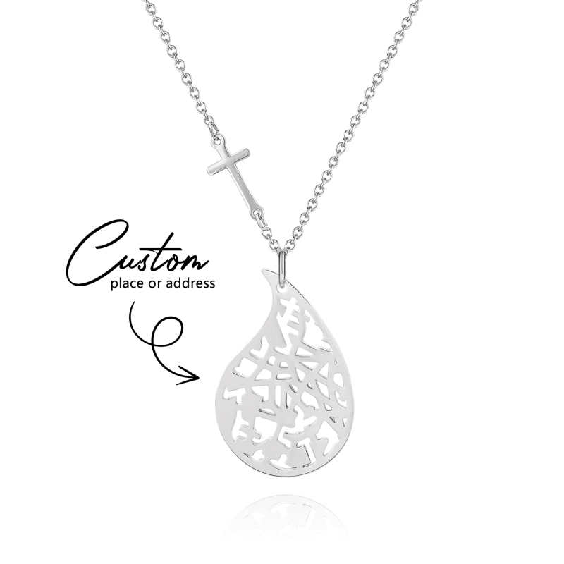 - Individuell gestalteter herzförmiger Anhänger mit einer Landkarte, der einen bedeutungsvollen Ort hervorhebt