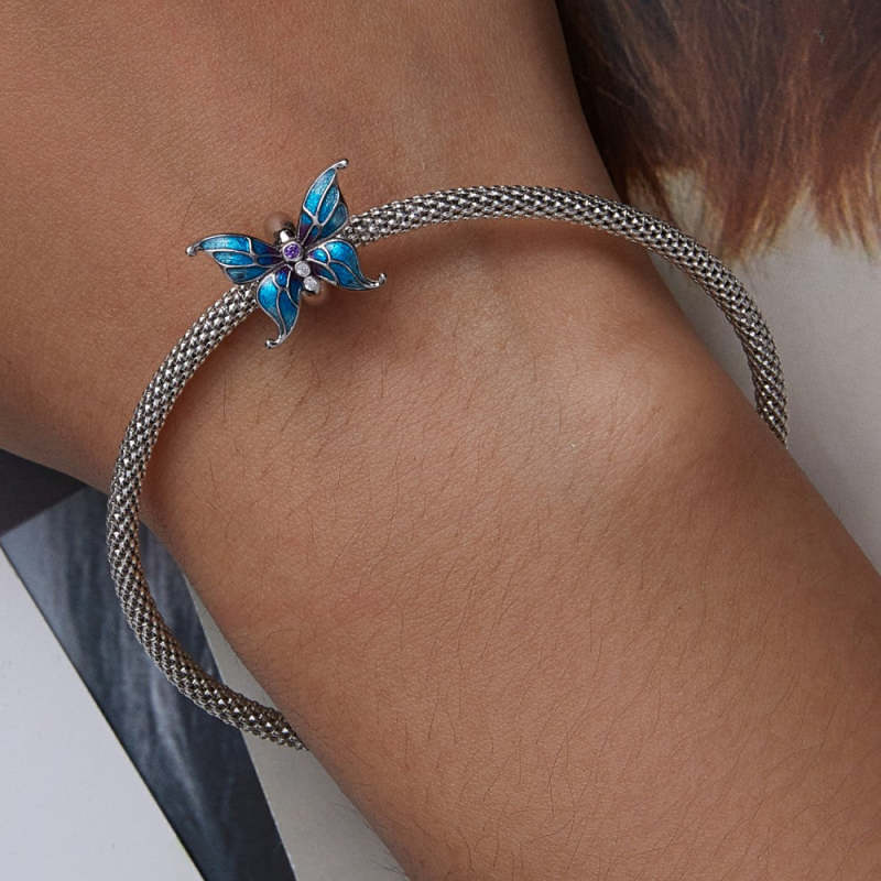 Niedlicher blauer Schmetterlings-Stopper-Charm, Spacer-Charm aus Silber