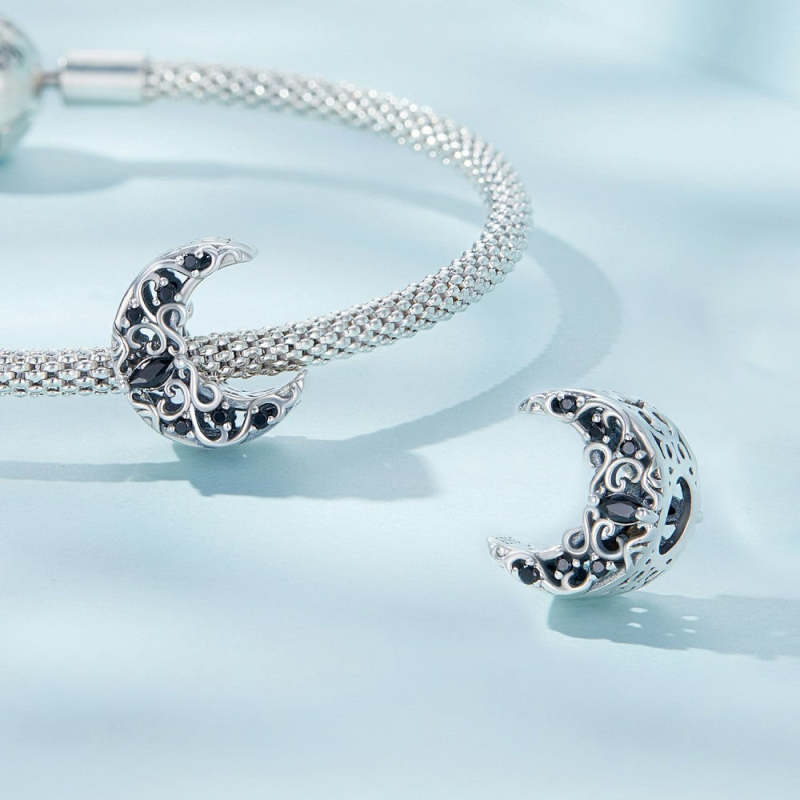 Dunkler Nachtmond-Charm Silber