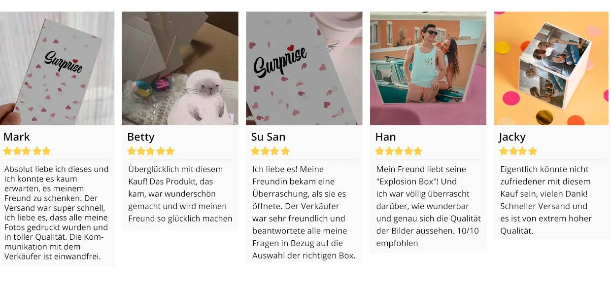 2. Die Vorbereitung personalisierter Produkte dauert vor dem Versand 2–5 Werktage (variiert je nach Kategorie).