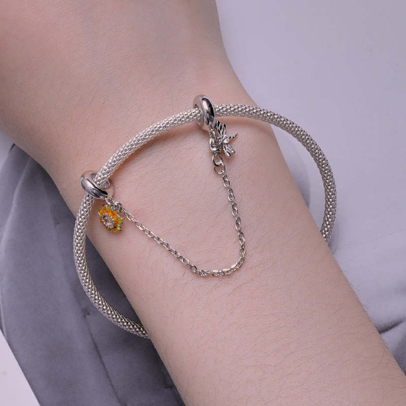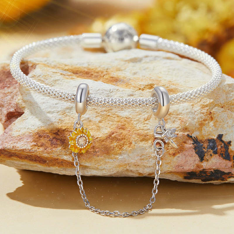 Libelle-Sonnenblume-Sicherheits-Charm-Kette Silber
