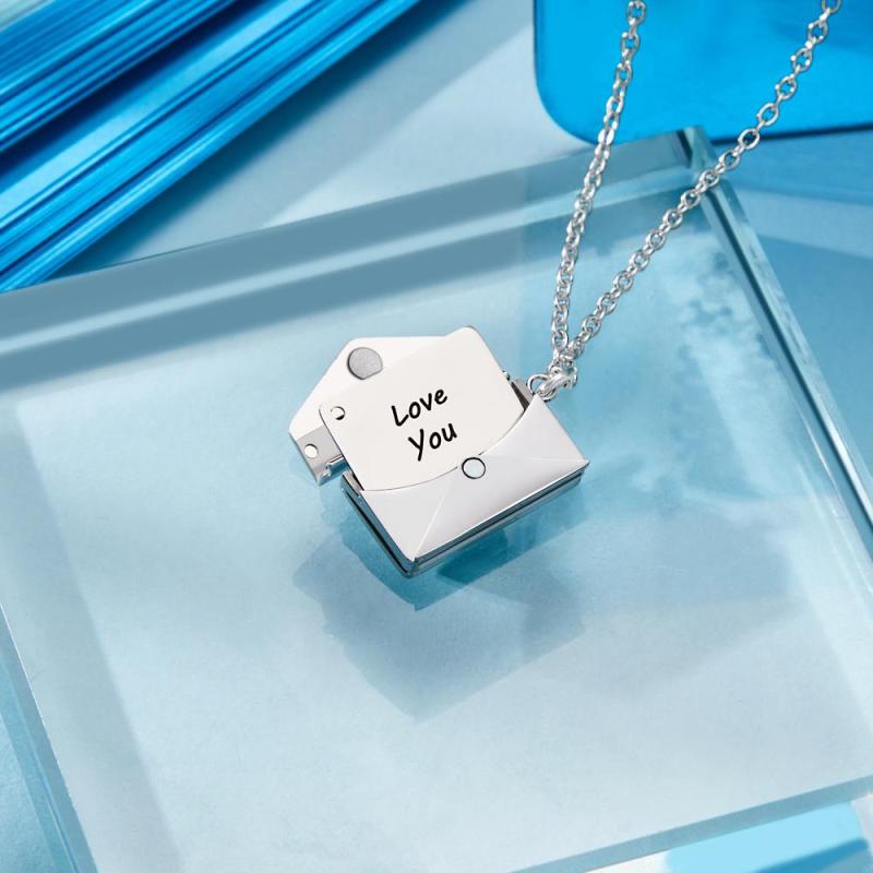 Gravierter Umschlag Herz Brief Halskette Schlüsselbein Halskette Namensanhänger