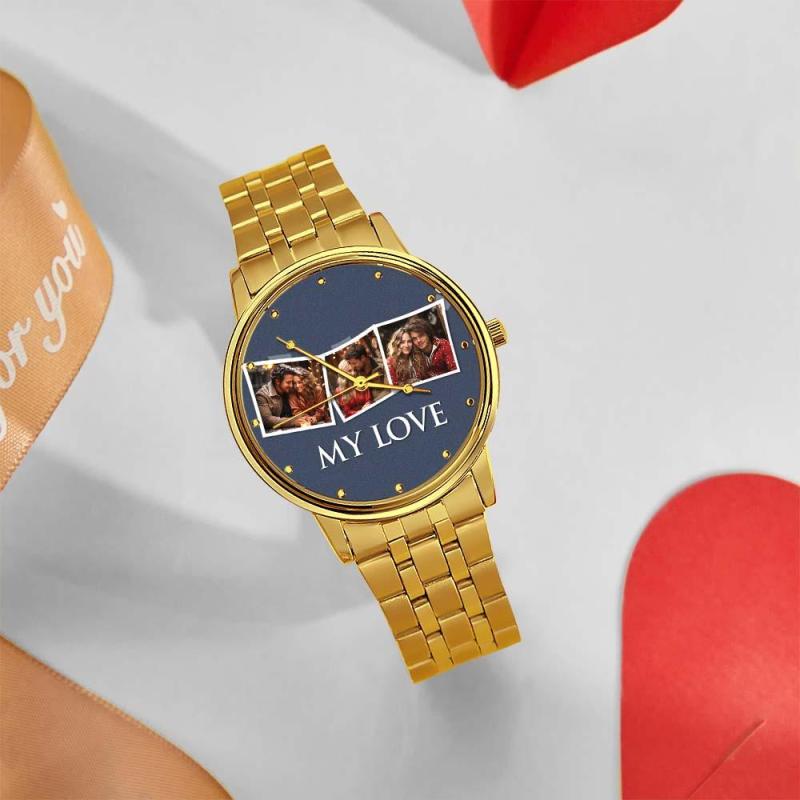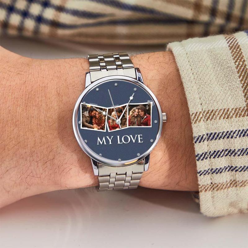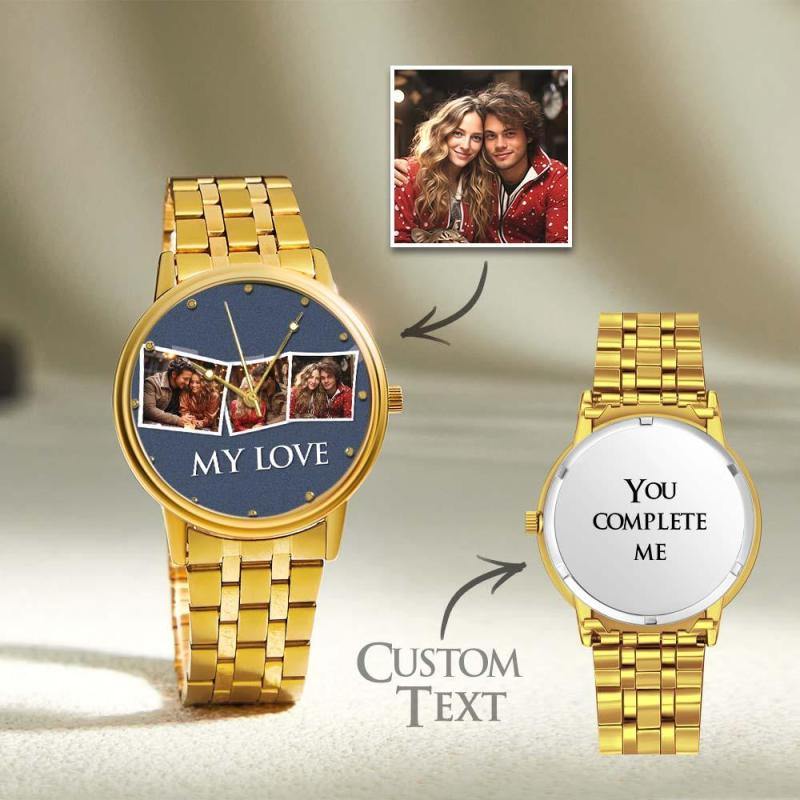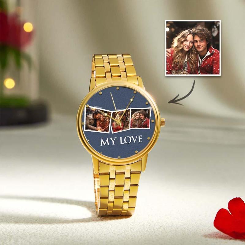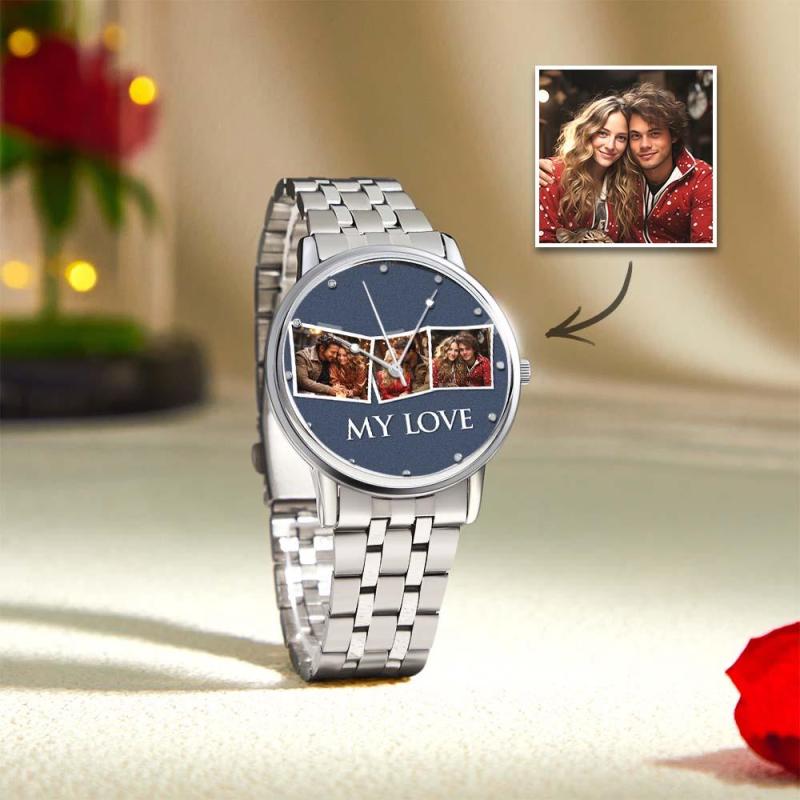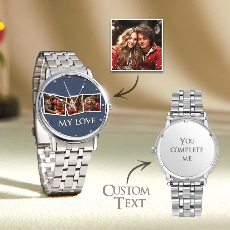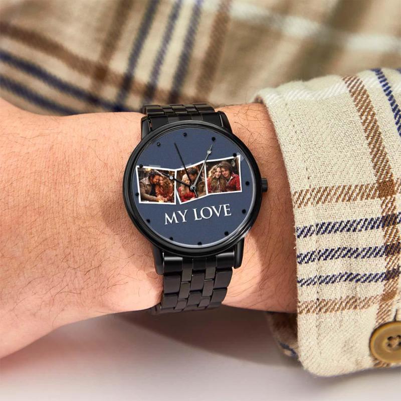 Personalisierte Gravierte Fotouhr, Valentinstagsgeschenke, Herrenarmbanduhr Mit Schwarzem Legierungsarmband, Fotouhr Für Den Freund, „Ich liebe dich“-Geschenke