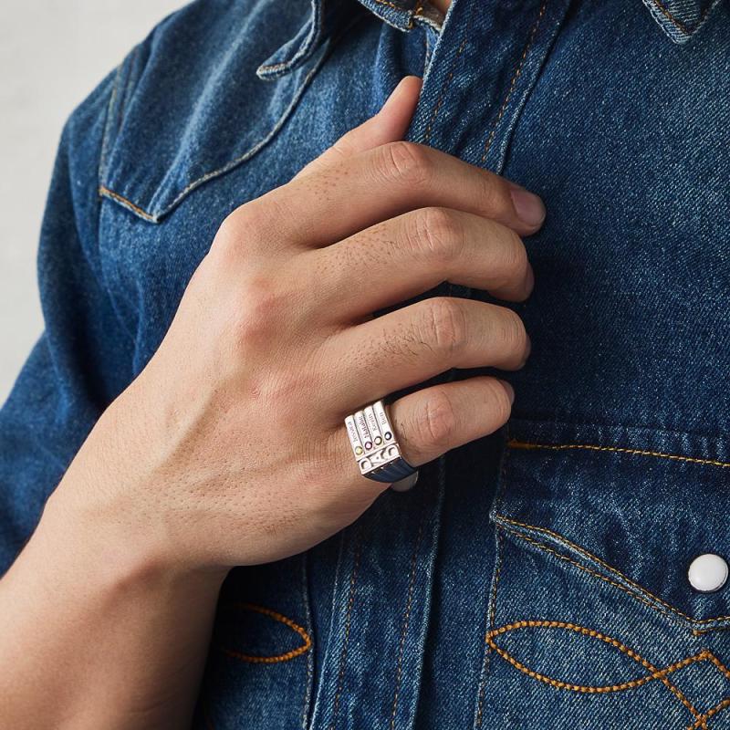 Dieser personalisierte Vaterring ist aus starkem und langlebigem Edelstahl mit vier Geburtssteinen Ihrer Wahl gefertigt. Es ist mit den Namen Ihrer Familie eingraviert und ein einzigartiges und bedeutungsvolles Geschenk zum Geburtstag Ihres Vaters. Ideal für jeden Vater, der eine persönliche Note liebt.