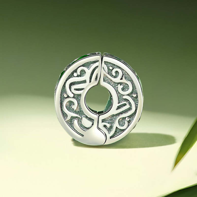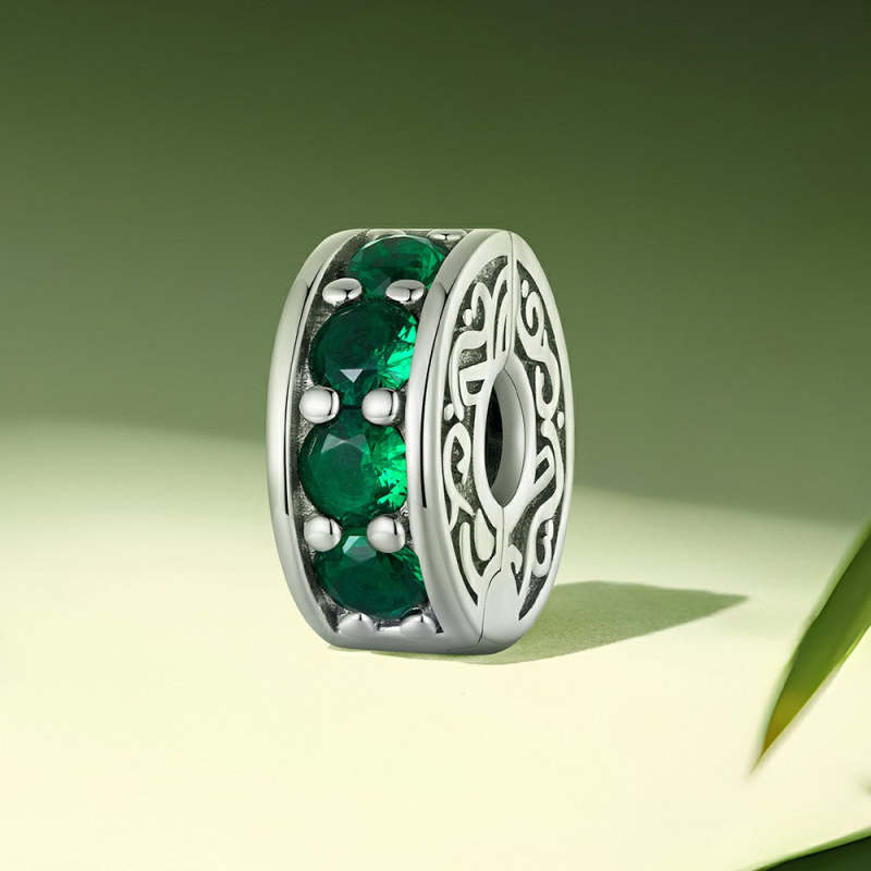 Grüner Edelstein-Stopper-Charm, Spacer-Charm, Silber