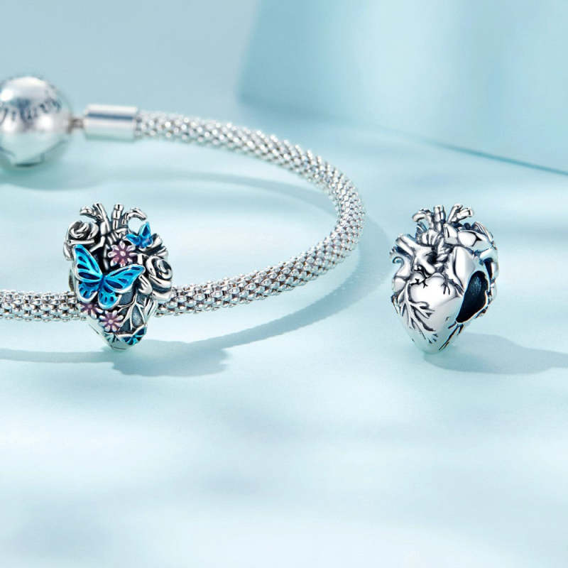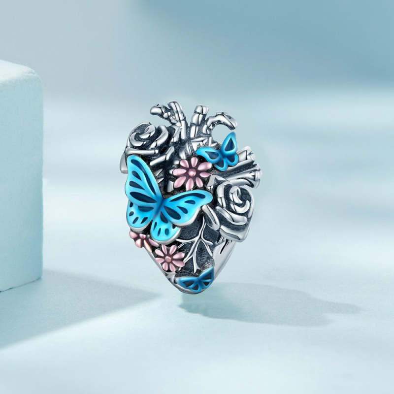 Herz-Schmetterling-Emaille-Charm Silber