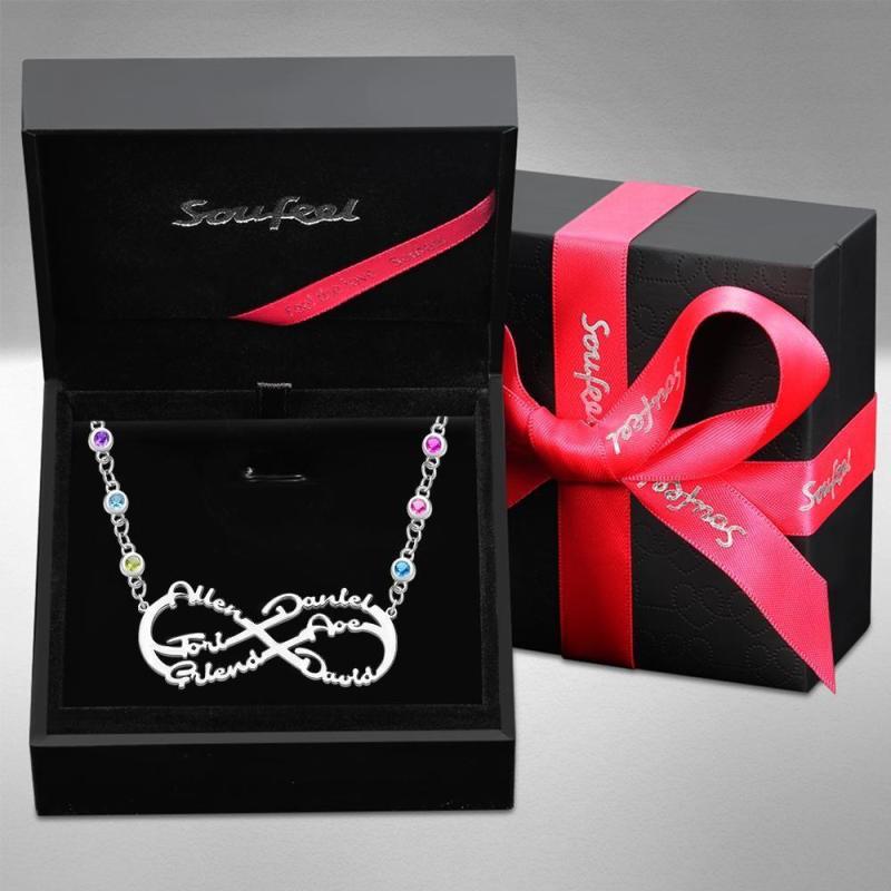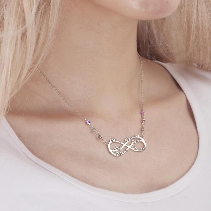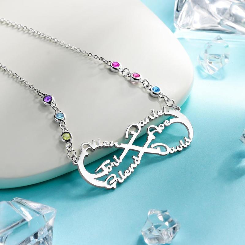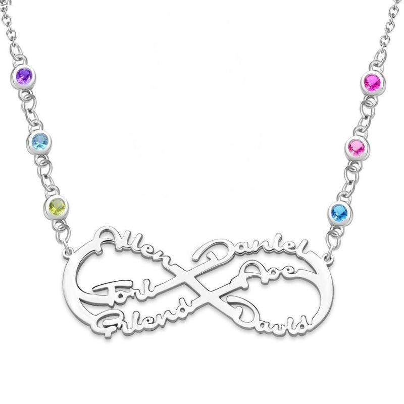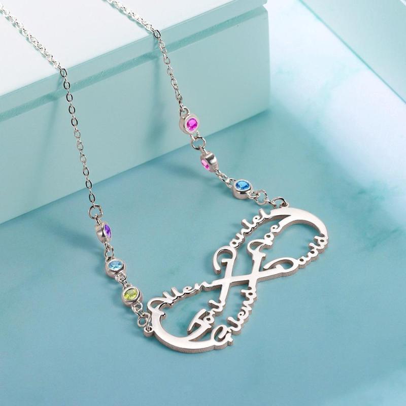 Infinity Halskette mit Benutzerdefiniertem Geburtsstein Name Halskette Silber Familie Geschenke