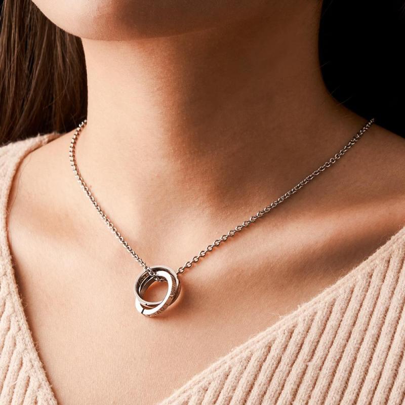 Stärken Sie das Band der Liebe mit unserer ineinandergreifenden Namenskette für Paare. Diese trendige und modische doppellagige Schlüsselbeinkette symbolisiert ewige Liebe. Dieses Jubiläumsgeschenk verfügt über ein einfaches, aber personalisiertes Design und besteht aus zwei ineinandergreifenden Ringen, in die die von Ihnen gewählte Nachricht eingraviert werden kann. Diese raffinierte Halskette ist in Schwarz- und Roségold erhältlich und strahlt einen unwiderstehlichen Charme aus. Schenken Sie dauerhafte Liebe mit diesem hochwertigen Accessoire.