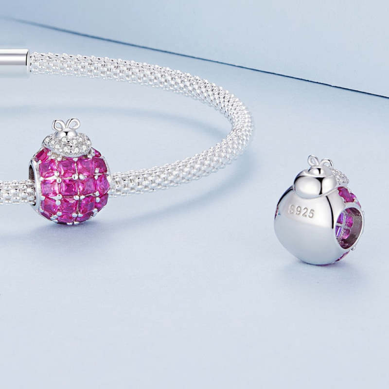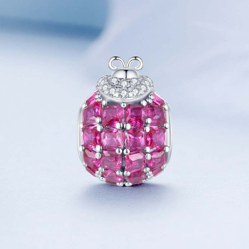 Marienkäfer tiefrosa Charm Silber
