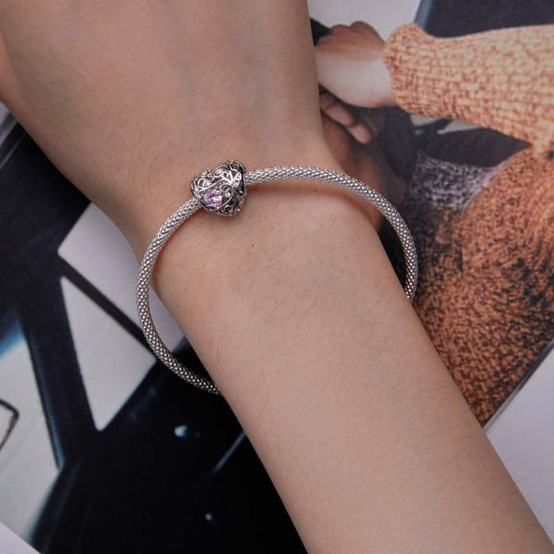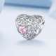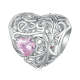 Lebensbaum-Charm mit rosa Zirkon, Silber