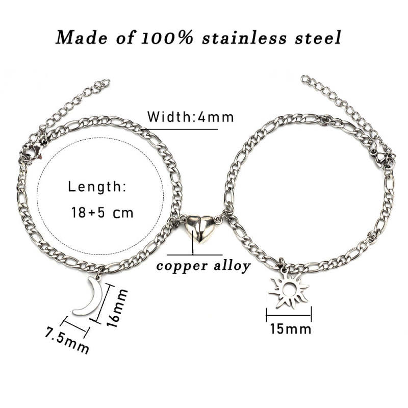Wird mit einem Paar zarter herzförmiger Magnete geliefert, die sich gegenseitig anziehen, wenn sie sich nähern. Diese Paararmbänder symbolisieren die ewige Liebe und Freundschaft zwischen Verliebten oder Freunden. Dieses passende Herzarmband für Paare wird mit einem verstellbaren Band geliefert, mit dem der Träger die perfekte Passform für sich selbst kreieren kann. Das Band ist robust, schmutzabweisend und leicht kombinierbar. Passend für jeden Anlass.