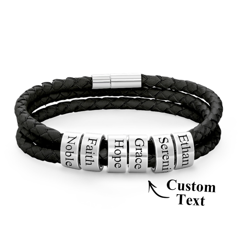 Herren-armband Aus Geflochtenem Leder Mit Kleinen Individuellen Perlen
