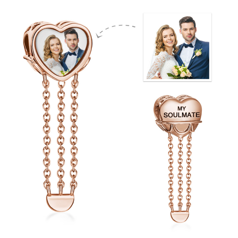 Machen Sie mit diesem personalisierten Foto-Charm „Never Be Apart“ in Herzform eine ewige Herz-zu-Herz-Verbindung zwischen Ihnen und Ihrem Liebsten. Dieser Anhänger ist mit der Gravur „My Soul Mate“ versehen und der Anhänger unten ist mit drei Ketten befestigt. Es scheint, als wären Sie eng verbunden und niemals getrennt. Wenn Sie nach einem Geschenk für Ihren Liebhaber suchen, ist es das beste. Sie können diesem schönen Anhänger auch Ihr Lieblingsfoto hinzufügen.
