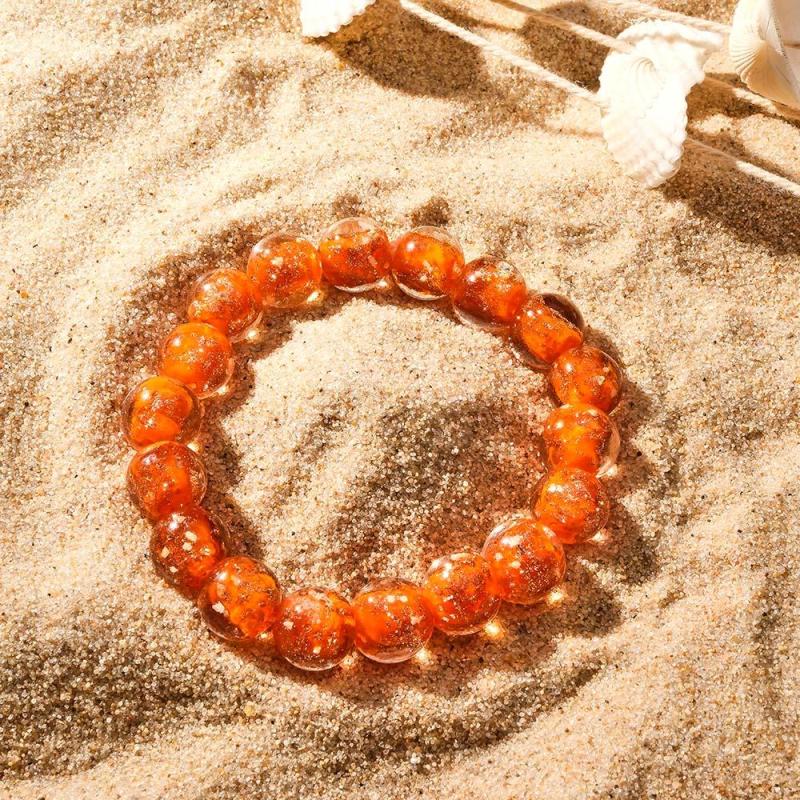 Orangefarbenes Firefly-glas-stretch-perlenarmband, Das Im Dunkeln Leuchtet, Leuchtendes Armband