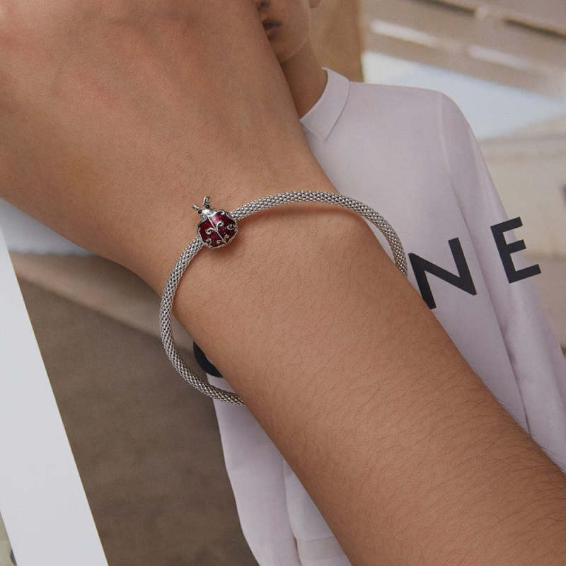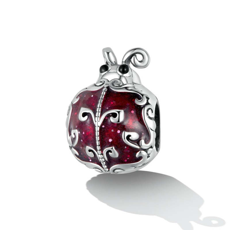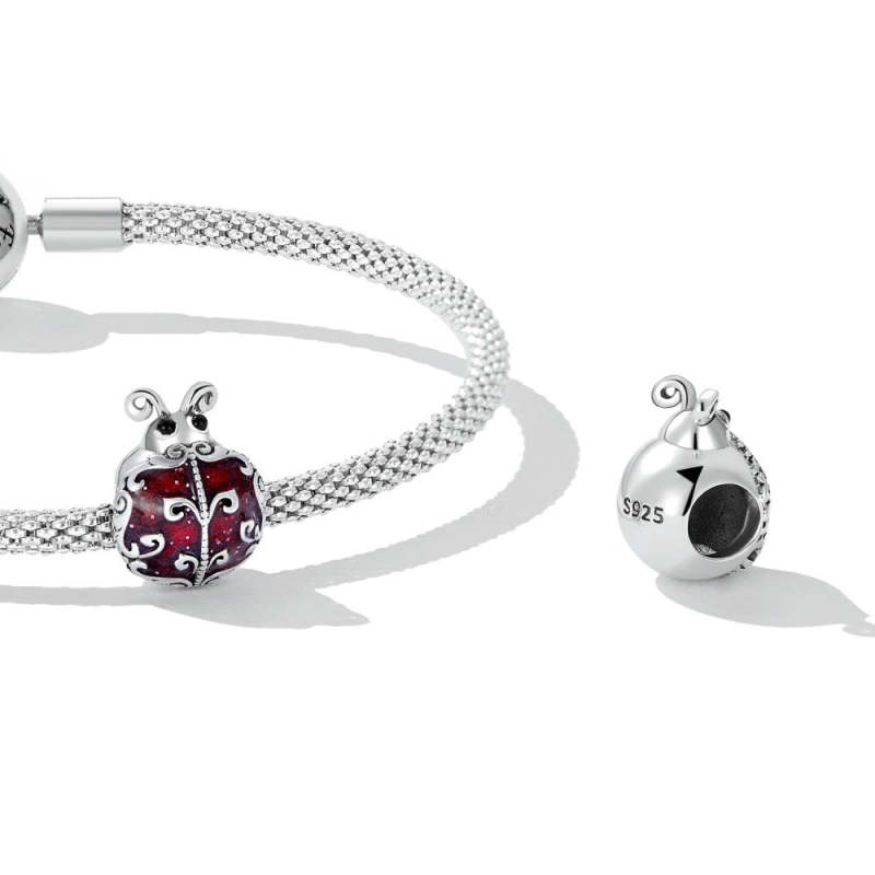 Muster Marienkäfer Emaille Charm Silber
