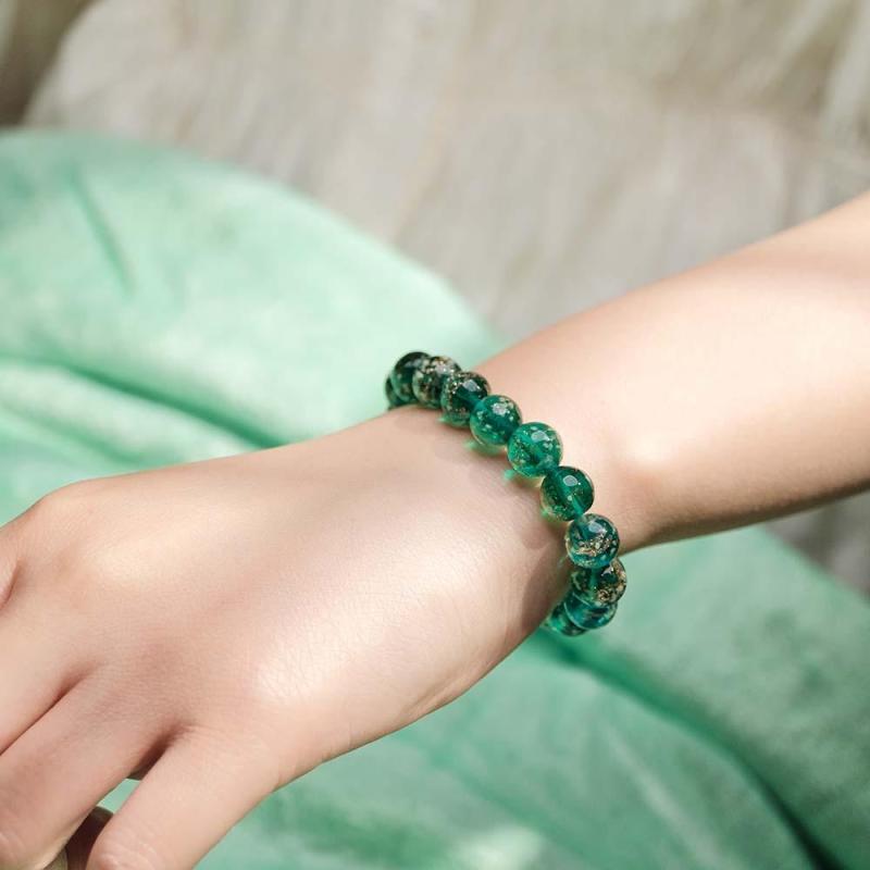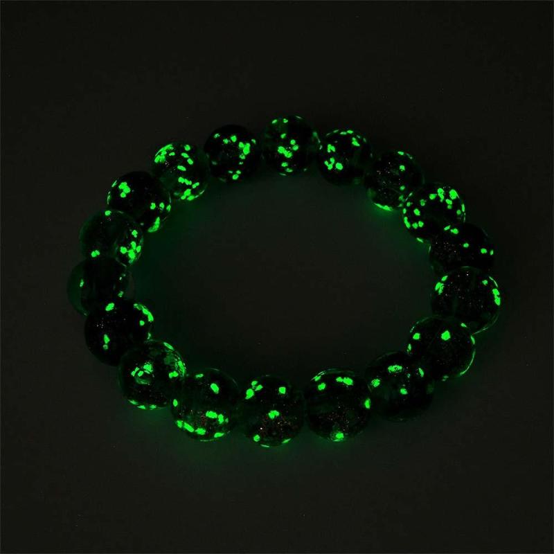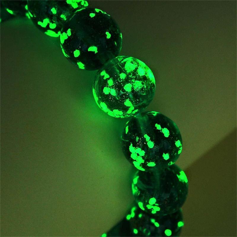 Pfauengrünes Glühwürmchen-glas-stretch-perlenarmband, Das Im Dunkeln Leuchtet
