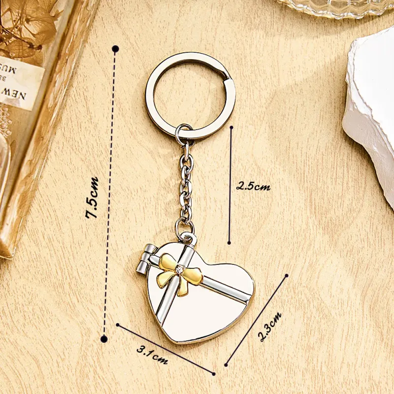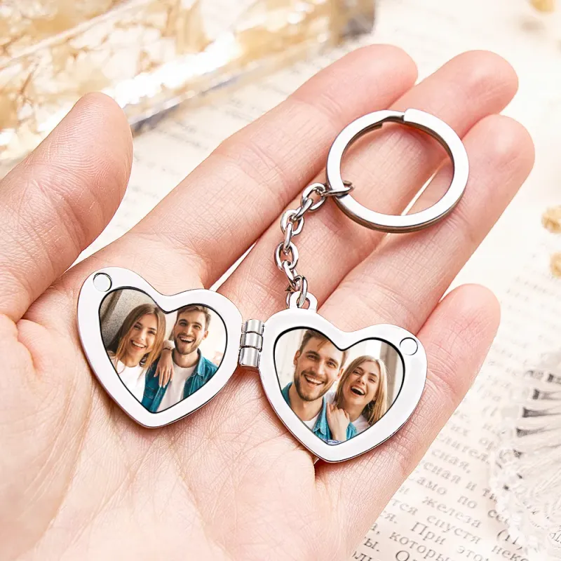 Dieser herzförmige Schlüsselanhänger kann mit bis zu zwei Fotos personalisiert werden, oder Sie können ein Foto zusammen mit einem kurzen Satz oder Datum auswählen. Es ist ein aufmerksames Geschenk für Ihre Lieben oder ein besonderes Andenken für Sie selbst.