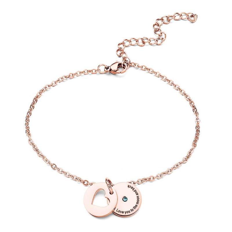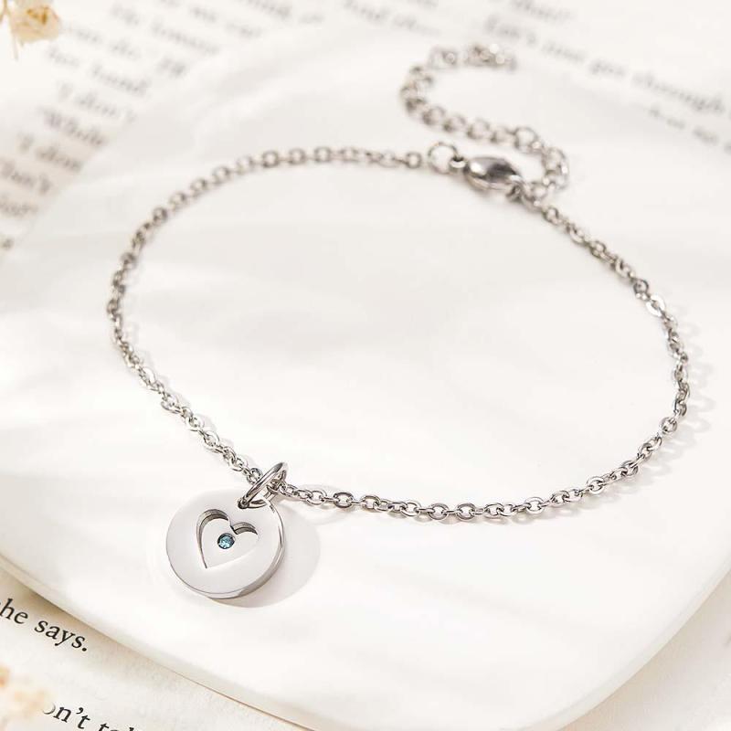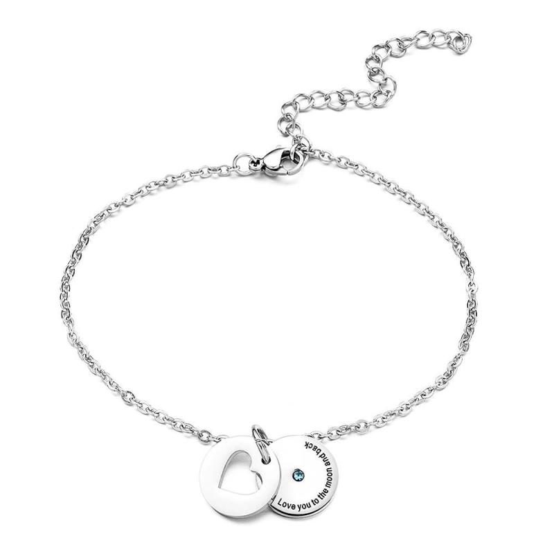 Das personalisierte Herz-Geburtsstein-Armband mit Geheimbotschaft wird ihr garantiert ein Lächeln ins Gesicht zaubern! Dieses personalisierte Armband verfügt über eine moderne polierte Scheibe mit einem zarten Swarovski-Geburtsstein in der Mitte. Auf der Scheibe ist eine Nachricht Ihrer Wahl eingraviert und von einem perfekten Herzen verdeckt, das gedreht werden kann, um Ihre Nachricht preiszugeben.