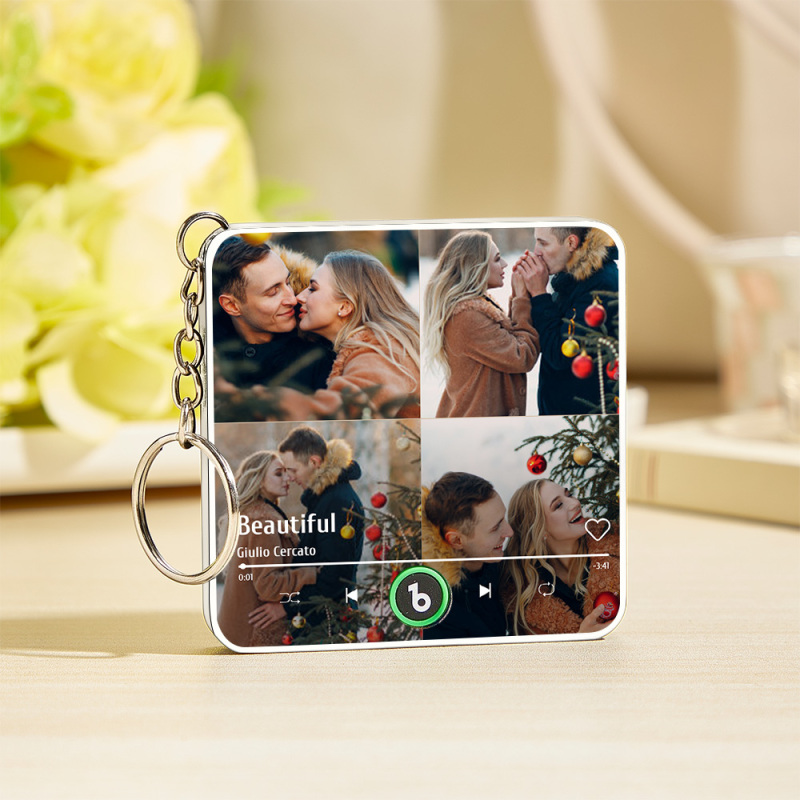 Personalisierter Musik-schlüsselanhänger Mit 4 Fotos, Spieluhr, Taschenanhänger, Der Musik Ohne Handy Spielt, Jubiläumsgeschenke