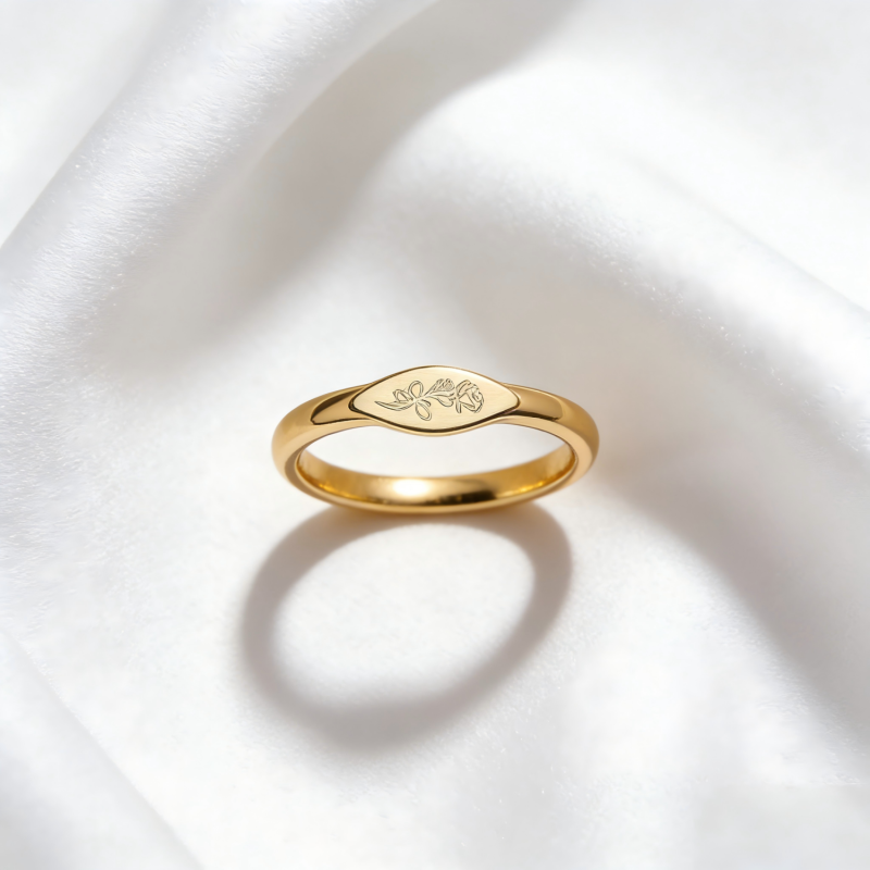 Personalisierter Geburtsblumenring, Zierlicher Stapelring, Minimalistischer Blumenschmuck, Geschenk Für Sie