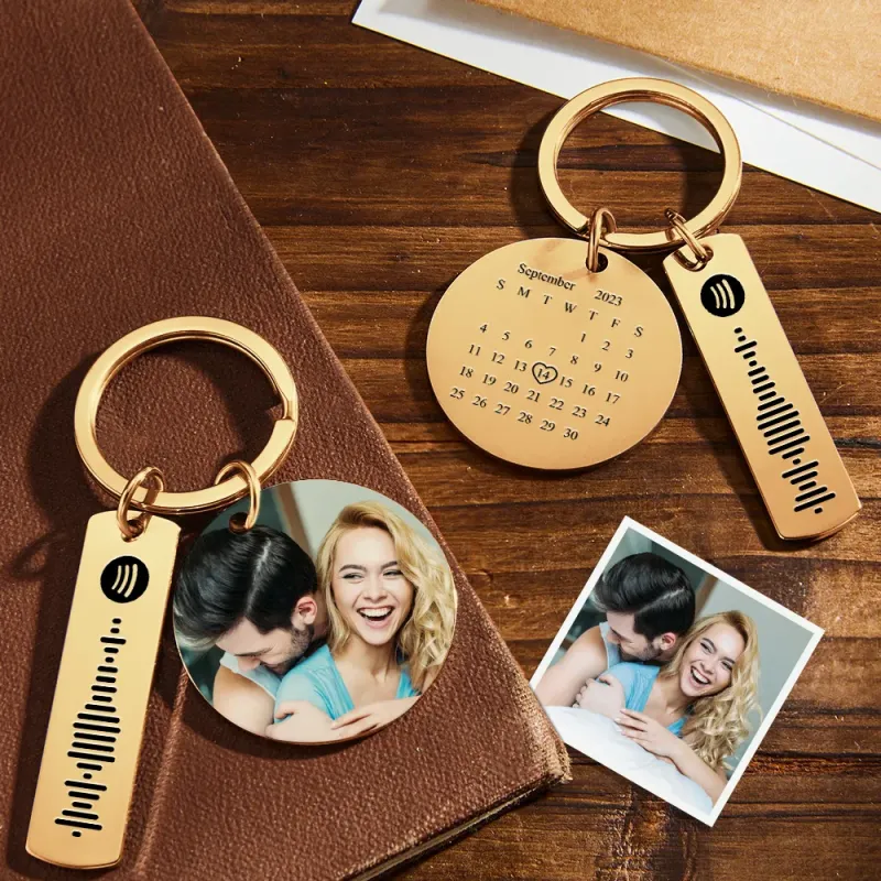 Personalisierter Kalender-schlüsselanhänger, Besonderer Tag, Bedeutendes Foto, Herz, Quadratisch, Kreisform, Musikcode, Metall-schlüsselanhänger, Jahrestagsgeschenk