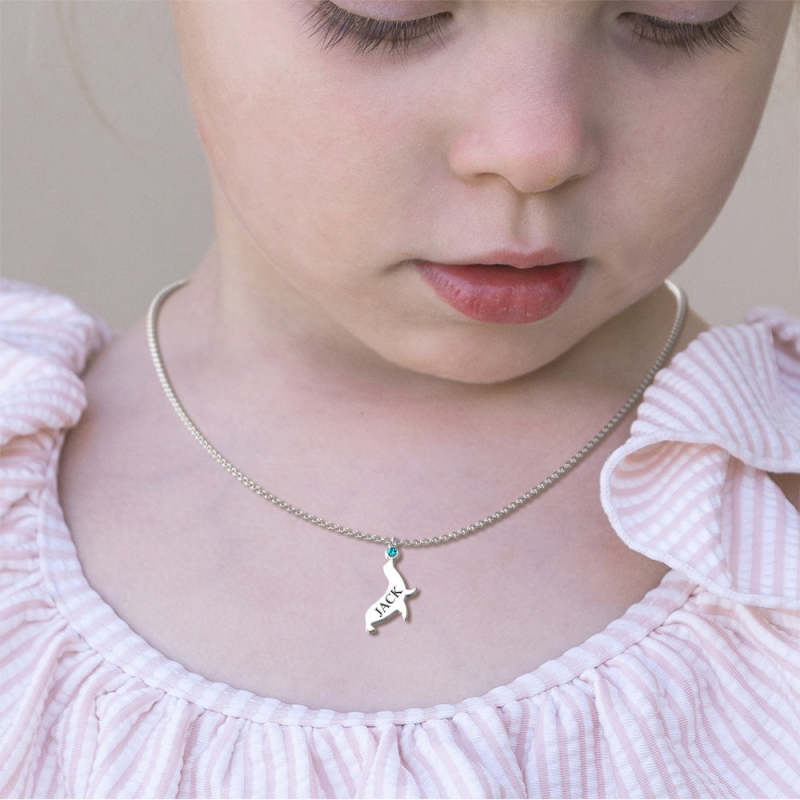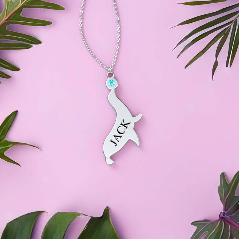 Personalisierte gravierte Geburtsstein-Delphin-Halskette für Babymädchen
