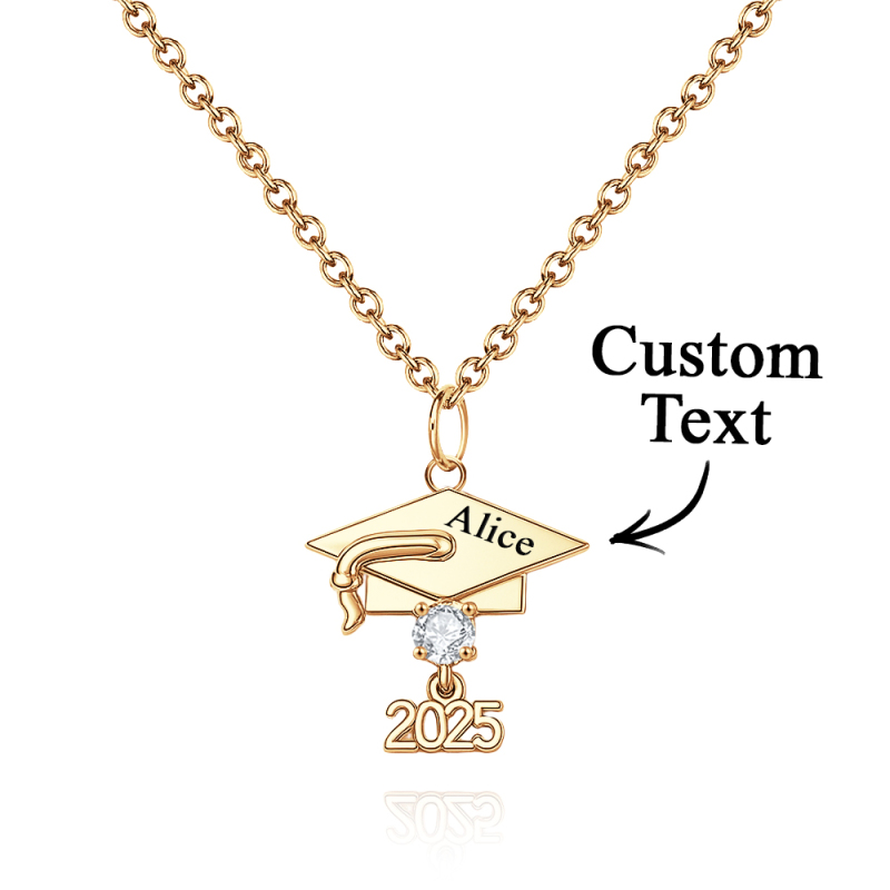 Abschlusskappen-Design – Die Halskette trägt einen Anhänger in Form einer Abschlusskappe, der die akademischen Leistungen und den Erfolg der Trägerin symbolisiert. Der Anhänger erinnert an den Meilenstein des Abschlusses und die harte Arbeit, die sie in ihre Ausbildung investiert hat. Er steht für eine bedeutende Leistung und würdigt ihren Weg.