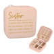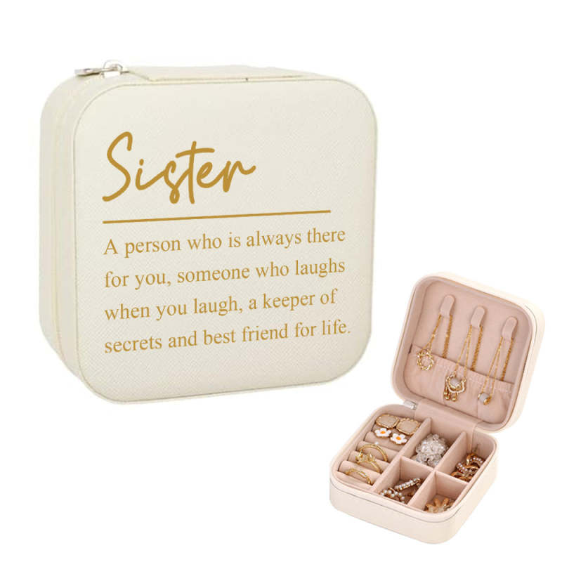 Überraschen Sie Ihre Schwester mit dieser personalisierten Schmuckschatulle! Personalisieren Sie es mit ihrem Namen und zeigen Sie ihr, wie viel sie Ihnen bedeutet. Perfekt, um all ihren Schmuck organisiert und stilvoll aufzubewahren!
