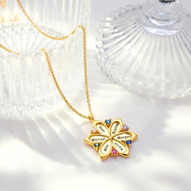 Personalisierte Namensblumen-halskette, Elegante Geburtsstein-anhänger, Halskette, Schmuck, Muttertagsgeschenke