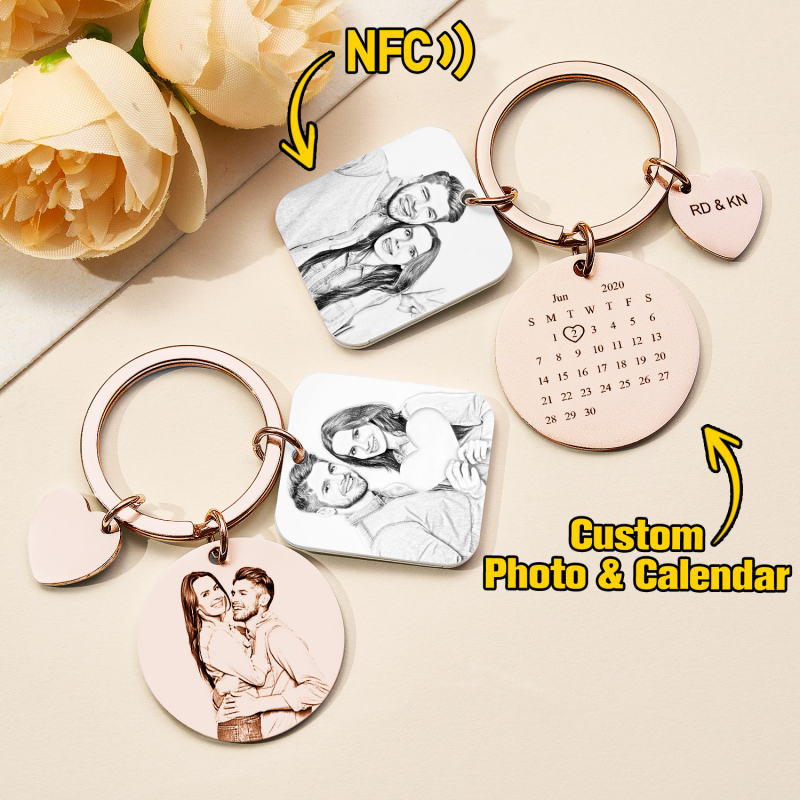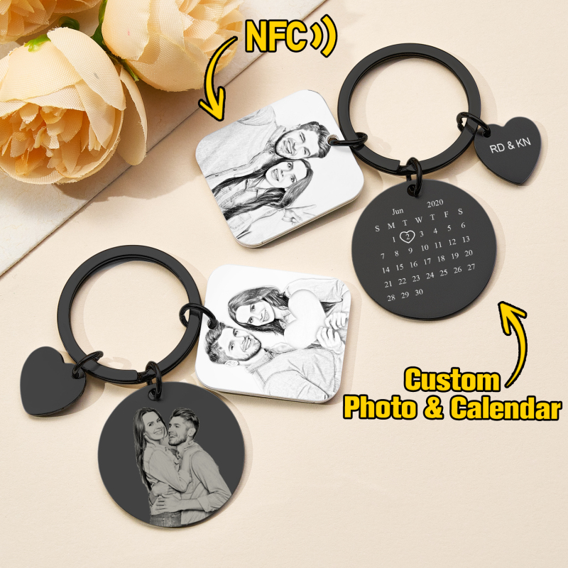 Verleihen Sie Ihren Alltagsmomenten mit unserem personalisierten Kalenderfoto-Schlüsselanhänger das gewisse Etwas. Dieser liebevoll gestaltete NFC-Schlüsselanhänger speichert Ihren Lieblingssong und ein besonderes Kalenderfoto – das perfekte Geschenk für Paare und Jahrestage. Robust und langlebig, mit einfachem Zugriff auf Ihre schönsten Erinnerungen und ein einzigartiges Andenken, das Gefühl und Technologie vereint.