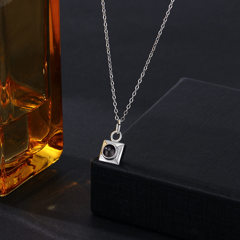 Personalisierte Projektionsbild-halskette Mit Quadratischem Anhänger, Weihnachtsgeschenk Für Männer