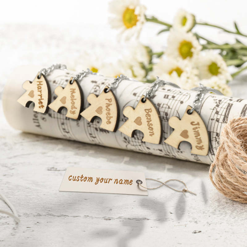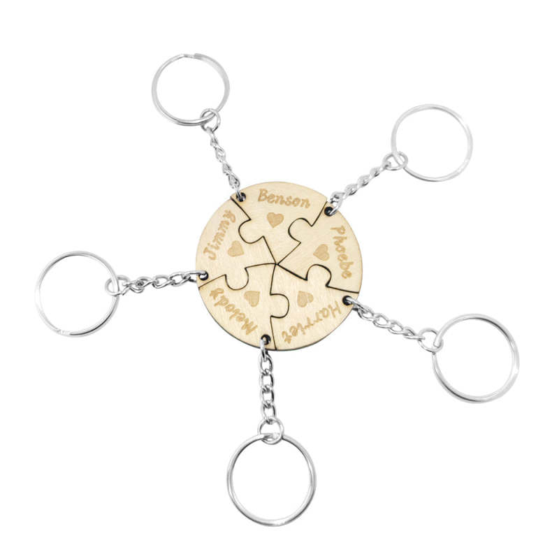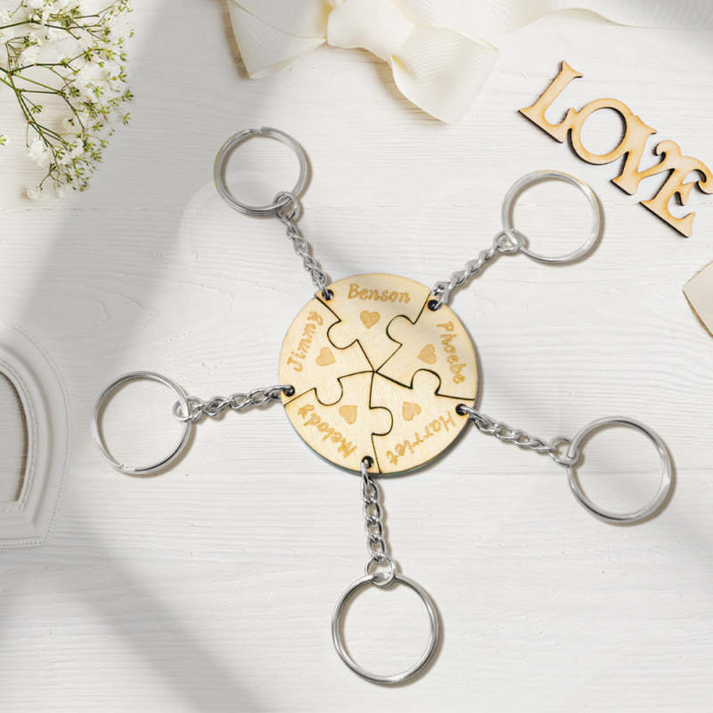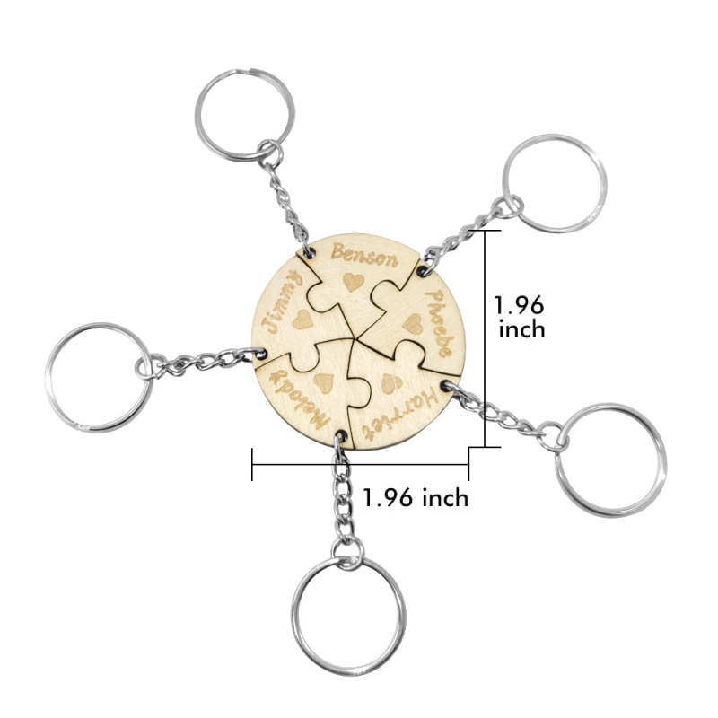Dies ist ein schöner personalisierter Schlüsselanhänger, einschließlich 5 Puzzles Teile Schlüsselanhänger. Personalisieren Sie Ihren speziellen Schlüsselanhänger für Ihre Familie. Schnitzen Sie Ihren Namen darauf. Nehmen Sie den Schlüsselanhänger mit und Sie werden sich mit ihnen verbunden fühlen. Dies ist das beste Geschenk für sie zu Jubiläen, Geburtstagen usw.