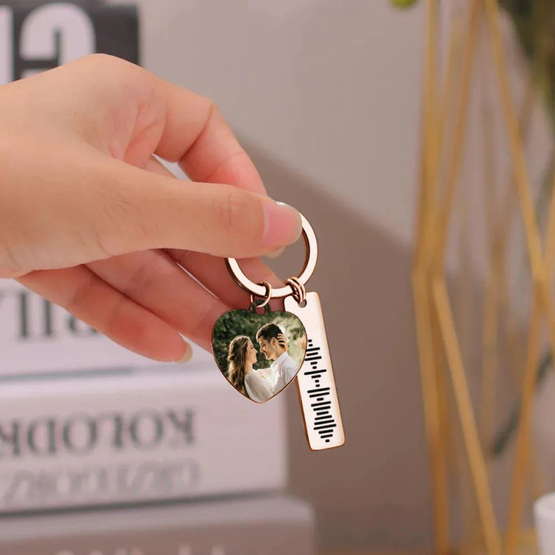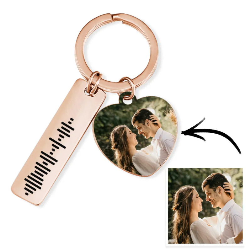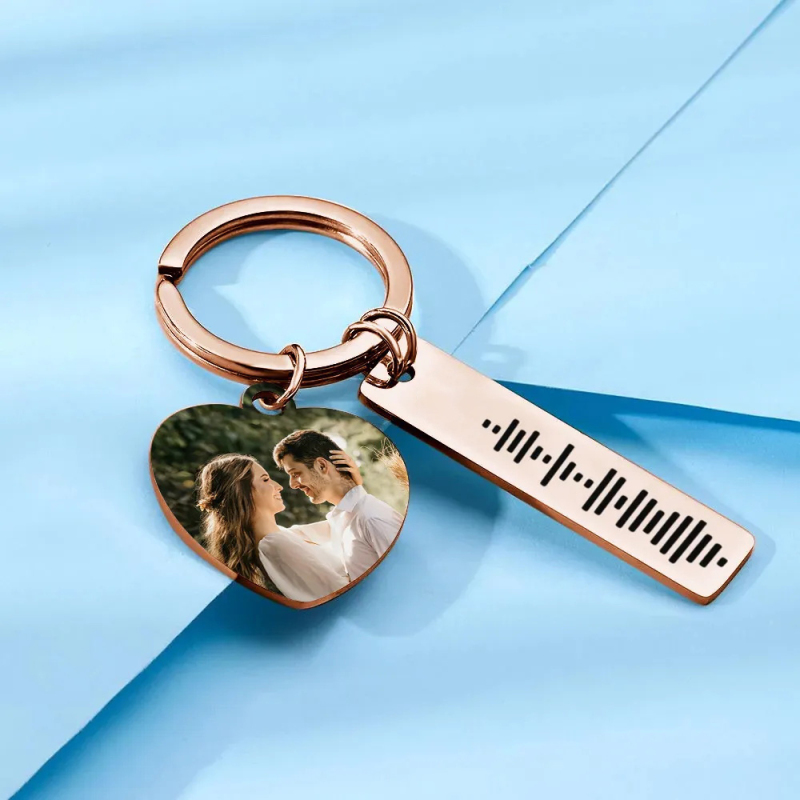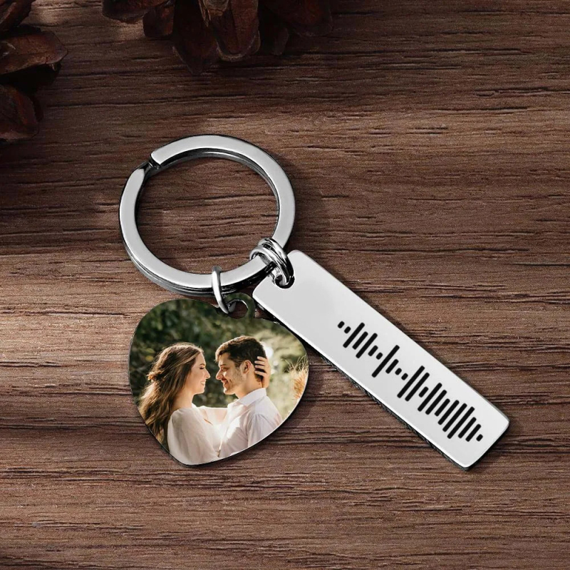 Personalisierter, scannbarer Musikcode-Schlüsselanhänger, benutzerdefiniertes Bild und Musik-Liedcode-Herz-Foto-Schlüsselanhänger für Paare, Geschenke für den Freund