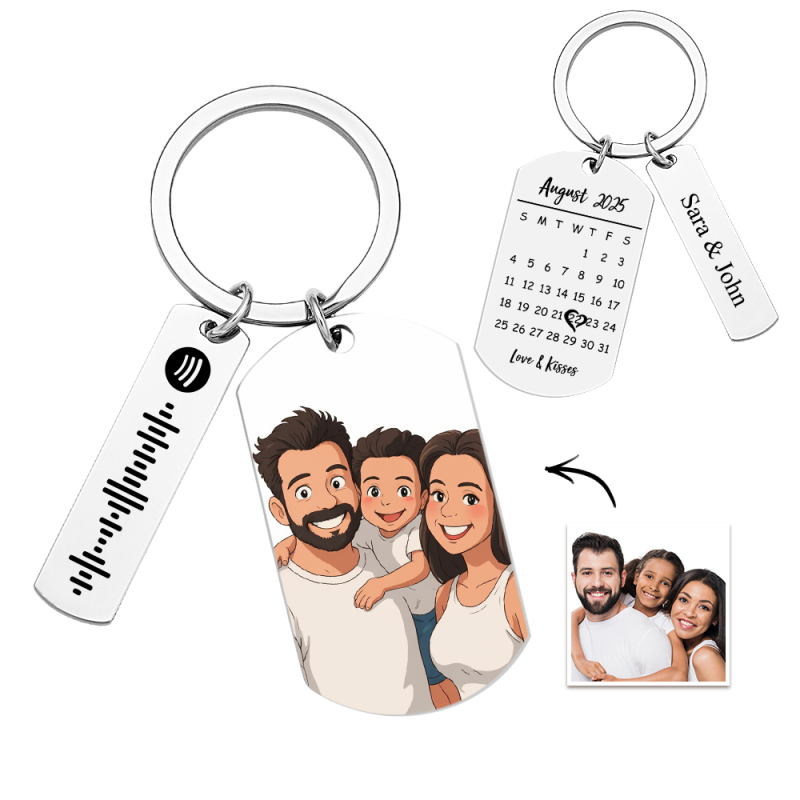 Personalisierter Spotify-Schlüsselanhänger mit Bild und Musik-Songcode. Foto-Schlüsselanhänger für Paare.