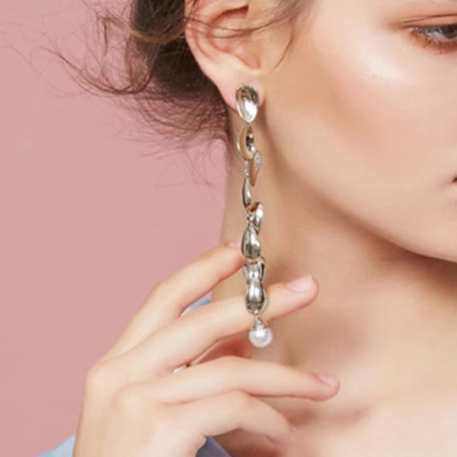 Petals Collection Ohrclips Mit Acht Blütenblättern Und Silbernen Quasten Und Perlen