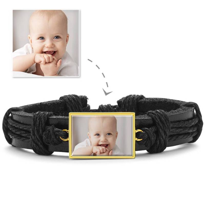 Fotoarmband, Andenken Geschenk Schwarzes Leder Quadratisch Rosévergoldet - Bunt