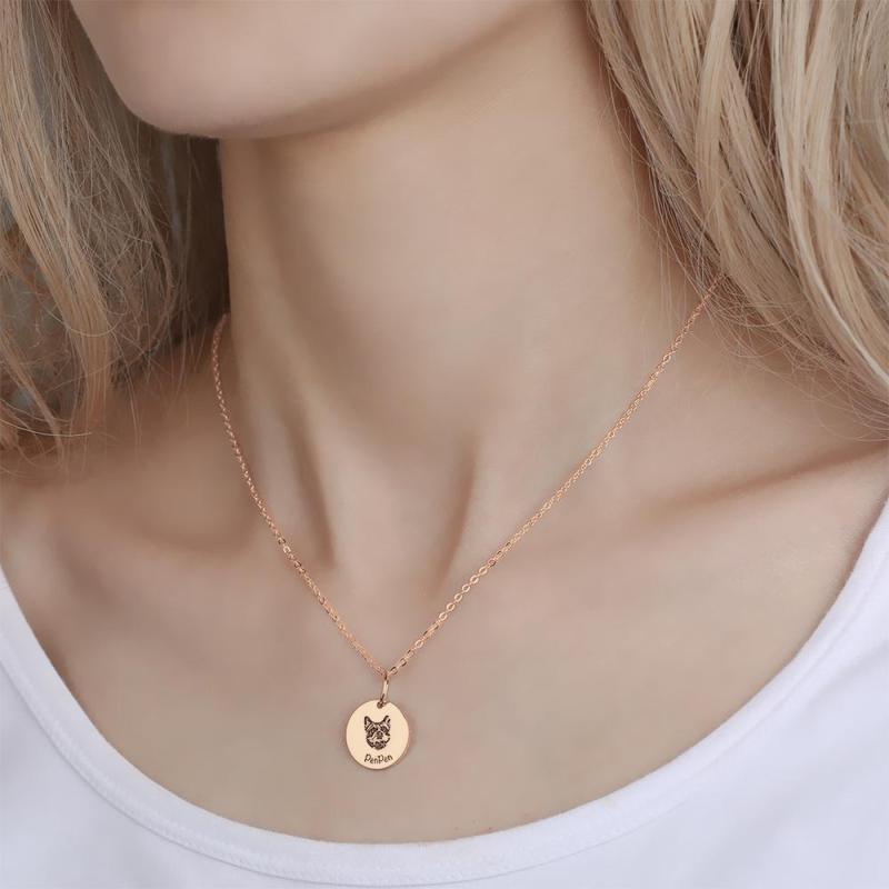 Foto Porträt Halskette mit Gravur Runde Form, Kundenspezifischer Porträt Schmuck Rose Vergoldet